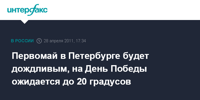 Санкт-Петербург. 28 апреля. INTERFAX.RU - Погода в Петербурге и Ленинградской области в мае ожидается теплой и дождливой, воздух в некоторых районах области будет прогреваться до 27 градусов.