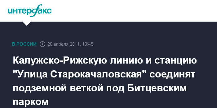 Калужско-Рижскую линию и станцию "Улица Старокачаловская" соединят подземной веткой под Битцевским парком
