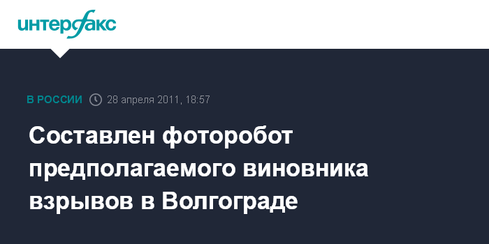 Волгоград. 28 апреля. INTERFAX.RU - Правоохранительные органы составили со слов свидетельницы фоторобот подозреваемого во взрывах в Волгограде, прогремевших 26 апреля.