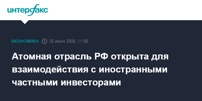 Атомная отрасль РФ открыта для взаимодействия с иностранными частными инвесторами