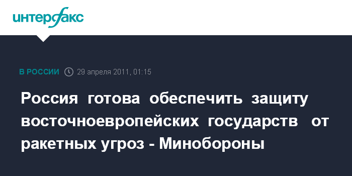 Россия готова обеспечить защиту восточноевропейских государств от ракетных угроз - Минобороны
