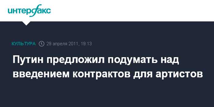 Пенза. 29 апреля. INTERFAX.RU - Премьер-министр России Владимир Путин считает возможным введение контрактной системы для театральных деятелей и предложил подготовить для рассмотрения соответствующие предложения.