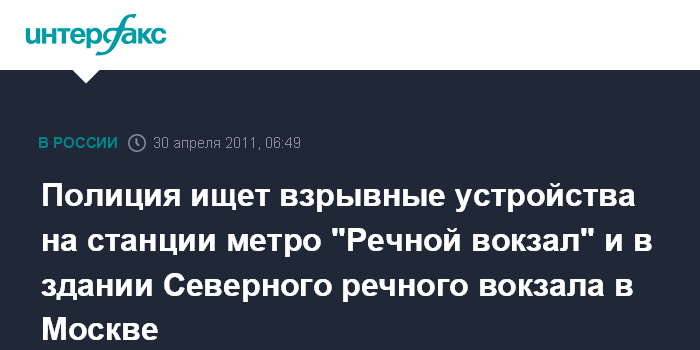 "На пульт оперативного дежурного поступил сигнал об угрозе взрыва на станции метро "Речной вокзал" и в здании Северного речного вокзала, – сообщил "Интерфаксу" источник в правоохранительных органах.