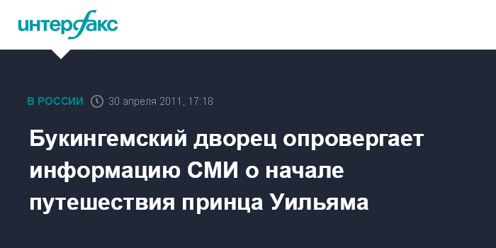 Букингемский дворец опровергает информацию СМИ о начале путешествия принца Уильяма