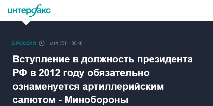 Вступление в должность президента РФ в 2012 году обязательно ознаменуется артиллерийским салютом - Минобороны
