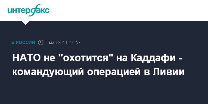 Брюссель. 1 мая. INTERFAX.RU - Военное командование НАТО признало, что натовская авиация нанесла удар по командно-контрольному центру Муамара Каддафи в Триполи. "Силы НАТО продолжали наносить точечные удары по военным объектам Каддафи минувшей ночью. В том числе, в субботу после 18 часов по Гринвичу нанесен удар по известному командно-контрольному центру в районе Баб аль-Азизия", - заявил в воскресенье в коммюнике командующий операцией генерал Шарль Бушар.