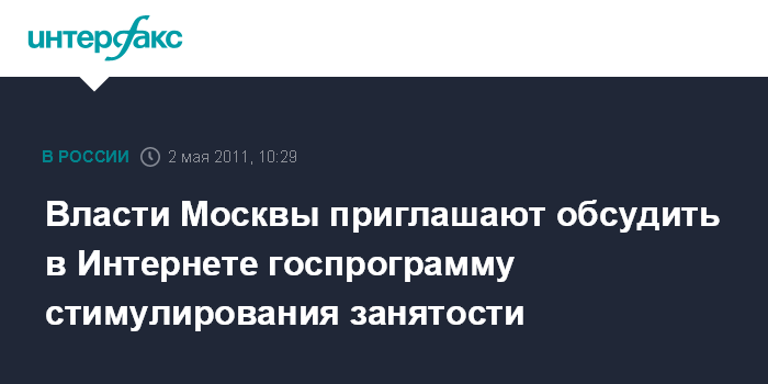 Власти Москвы приглашают обсудить в Интернете госпрограмму стимулирования занятости
