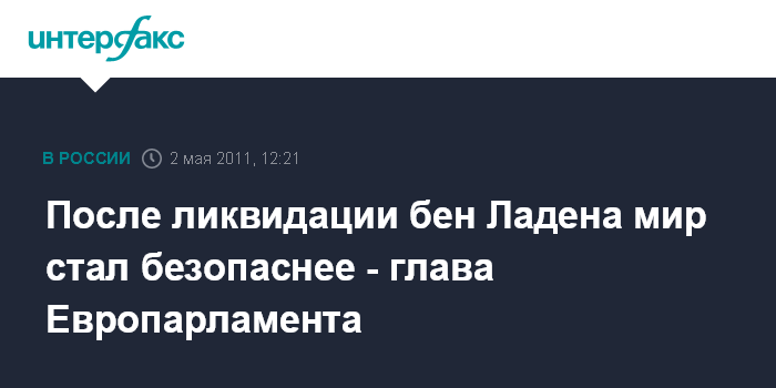 После ликвидации бен Ладена мир стал безопаснее - глава Европарламента