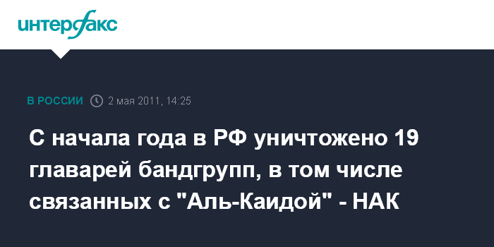 С начала года в РФ уничтожено 19 главарей бандгрупп, в том числе связанных с "Аль-Каидой" - НАК