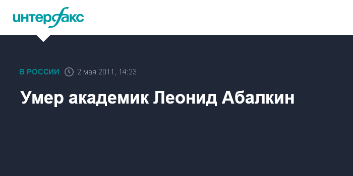 Москва. 2 мая. INTERFAX.RU - Известный ученый-экономист и государственный деятель, академик Леонид Абалкин скончался в Москве на 81-м году жизни, сообщил в воскресенье телеканал "Россия". Л.Абалкин являлся одним из ведущих экономистов бывшего СССР. В эпоху перестройки он входил в число разработчиков программ по переходу от плановой советской экономики к регулируемому рынку.