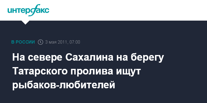 Южно-Сахалинск. 3 мая. ИНТЕРФАКС - ДАЛЬНИЙ ВОСТОК - Двое рыбаков-любителей - жители города Александровска-Сахалинского 31 и 25 лет - утром в понедельник вышли в море (в Татарский пролив) на моторной лодке и не вернулись.