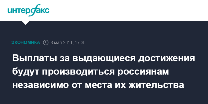 Выплаты за выдающиеся достижения будут производиться россиянам независимо от места их жительства