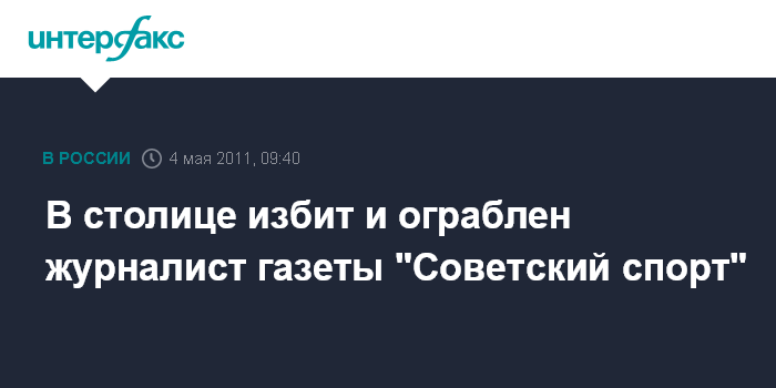Москва. 4 мая. INTERFAX.RU - На северо-востоке Москвы во вторник вечером неизвестные избили и ограбили журналиста газеты "Советский спорт" Ивана Тарасенко, сообщил "Интерфаксу" в среду источник в правоохранительных органах города.