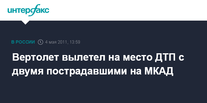 Москва. 4 мая. INTERFAX.RU - На МКАД в среду днем произошло ДТП с участием нескольких машин, для эвакуации пострадавших вылетел вертолет.