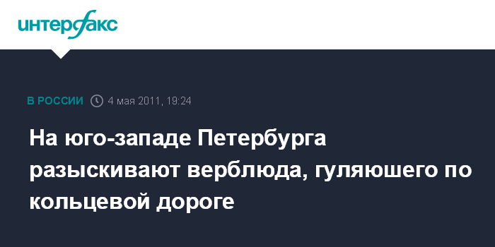 В администрации Кировского района "Интерфаксу" сообщили, что верблюд гулял по кольцевой автодороге на территории соседнего Московского района. Однако в администрации этого района "Интерфаксу" сказали, что полиция четырежды выезжала на поиски верблюда, но так никого не нашла.