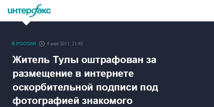 Житель Тулы оштрафован за размещение в интернете оскорбительной подписи под фотографией знакомого