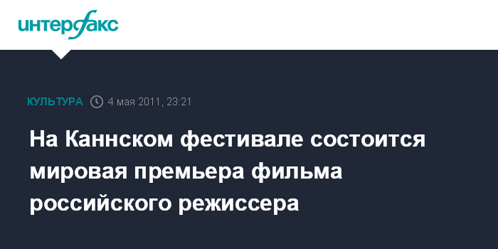 На Каннском фестивале состоится мировая премьера фильма российского режиссера