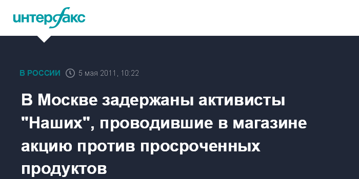 В пресс-службе движения "Наши" подтвердили "Интерфаксу", что в магазине были задержаны активисты этого движения, проводившие акцию против продажи просроченных продуктов.