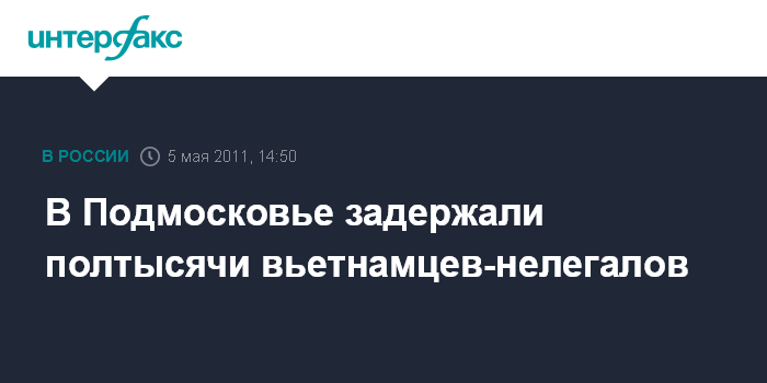 Москва. 5 мая. INTERFAX.RU - Более 500 нелегальных мигрантов из Вьетнама задержано в ходе совместной операции ФМС, ФСБ и полиции в подмосковной Малаховке, сообщила "Интерфаксу" в четверг и.о. пресс-секретаря ФМС России Залина Корнилова.