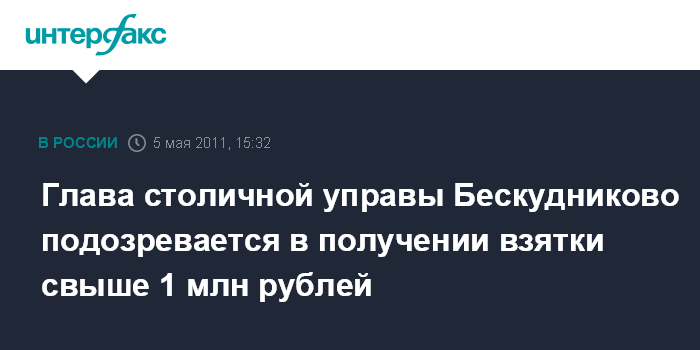 Москва. 5 мая. INTERFAX.RU - Следственные органы главного следственного управления СКР по Москве возбудили уголовное дело в отношении главы управы района Бескудниково за получение взятки в крупном размере, сообщила в четверг "Интерфаксу" официальный представитель столичного ГСУ СКР Виктория Цыпленкова.