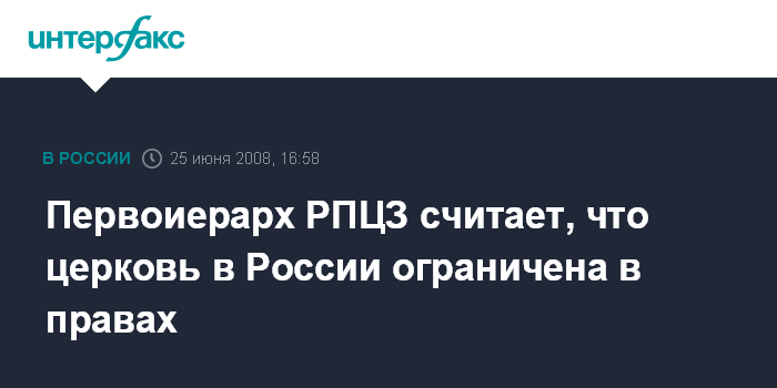 Москва. 25 июня. INTERFAX.RU - Первоиерарх Русской православной церкви за границей митрополит Иларион выразил сожаление по поводу того, что в России церковь все еще не имеет достаточных прав.