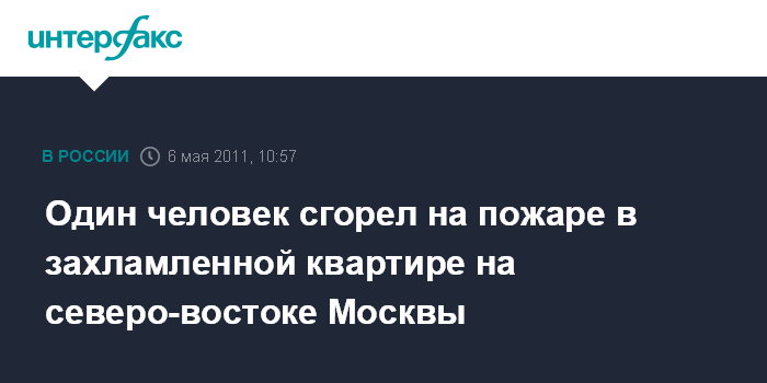 Москва. 6 мая. INTERFAX.RU - На северо-востоке Москвы в результате пожара в квартире один человек погиб, еще шесть были эвакуированы.