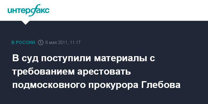"В суд поступили материалы с требованием избрать меру пресечения в виде ареста для Глебова", - сказала "Интерфаксу" пресс-секретарь Басманного суда Екатерина Коротова.
