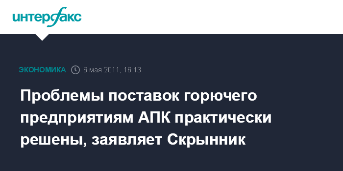 Проблемы поставок горючего предприятиям АПК практически решены, заявляет Скрынник