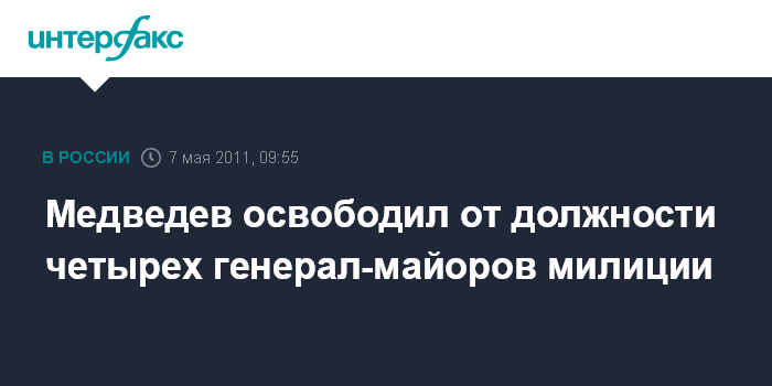 В частности, от занимаемой должности освобождены заместитель начальника Главного управления внутренних дел по Алтайскому краю по экономической безопасности генерал-майора милиции Тимофей Пан, заместитель начальника Главного управления внутренних дел по городу Санкт-Петербургу и Ленинградской области (по Ленинградской области) генерал-майора милиции Александр Степин.