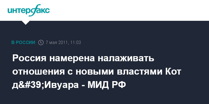Россия намерена налаживать отношения с новыми властями Кот д'Ивуара - МИД РФ