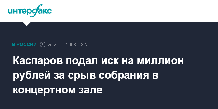 Исковое заявление Гарри Каспарова подано к концертному залу "Мир" за невыполнение обязательств по договору.
