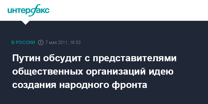 Путин обсудит с представителями общественных организаций идею создания народного фронта