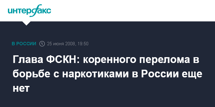 Москва. 25 июня. ИНТЕРФАКС - Директор Федеральной службы РФ по наркоконтролю (ФСКН) Виктор Иванов считает, что в России пока не достигнут коренной перелом в сфере борьбы с наркотиками.