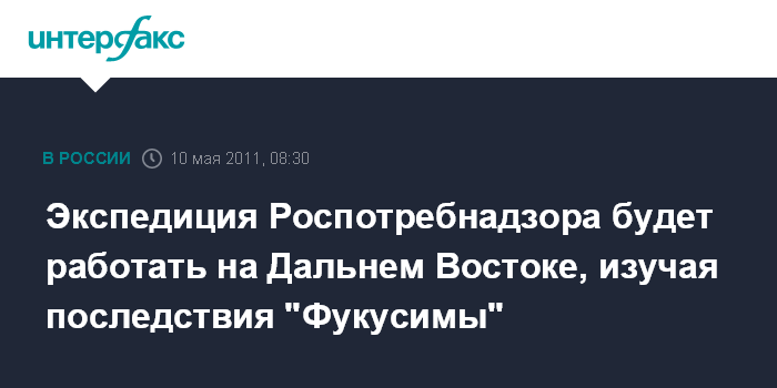Москва. 10 мая. INTERFAX.RU - Роспотребнадзор направляет группу сотрудников на Дальний Восток для изучения последствий для российских регионов аварии на японской АЭС "Фукусима".