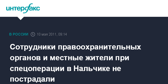 Нальчик. 10 мая. INTERFAX.RU - Никто из сотрудников правоохранительных органов и гражданских лиц в ходе проведенной в Нальчике спецоперации не пострадал, сообщили агентству "Интерфакс-Юг" в Оперативном штабе КБР.