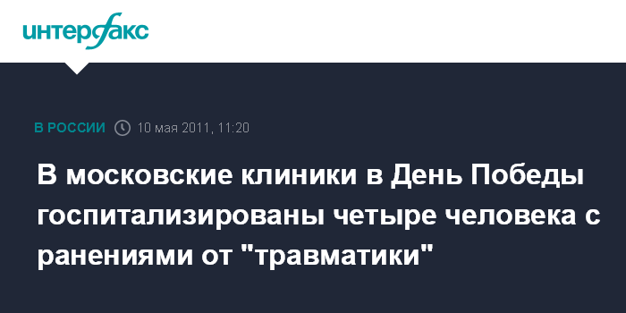 В московские клиники в День Победы госпитализированы четыре человека с ранениями от "травматики"