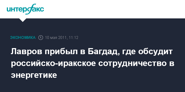 Багдад. 10 мая. INTERFAX.RU - Глава МИД России Сергей Лавров прибыл во вторник в Багдад с рабочим визитом.