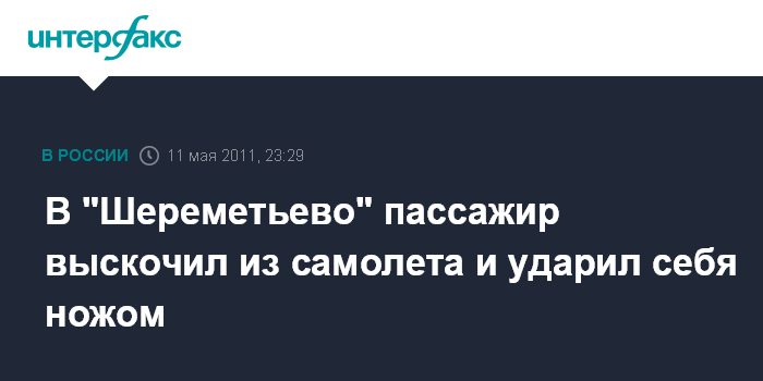 Москва. 11 мая. ИНТЕРФАКС - Пассажир рейса Москва - Сочи авиакомпании "Аэрофлот" сбежал из самолета по аварийному трапу, добежал до терминала, где в одном из кафе ударил себя ножом, сообщил "Интерфаксу" один из сотрудников аэропорта "Шереметьево".