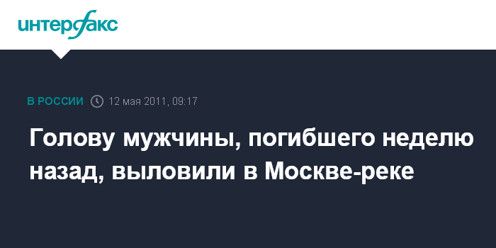 Москва. 12 мая. INTERFAX.RU - Голова неизвестного мужчины обнаружена в пакете в Москве-реке, сообщил "Интерфаксу" источник в правоохранительных органах в четверг.