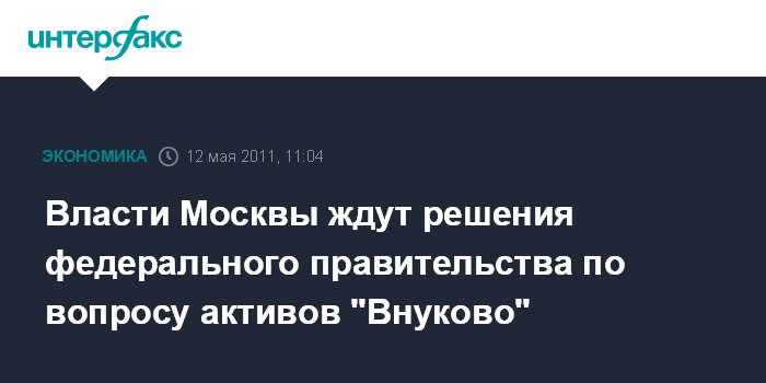 Власти Москвы ждут решения федерального правительства по вопросу активов "Внуково"