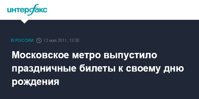 Москва. 12 мая. INTERFAX.RU - В день 76-й годовщины московского метрополитена во всех кассах подземки будут продаваться праздничные билеты, посвященные этой дате.