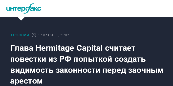 Глава Hermitage Capital считает повестки из РФ попыткой создать видимость законности перед заочным арестом