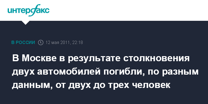 В Москве в результате столкновения двух автомобилей погибли, по разным данным, от двух до трех человек