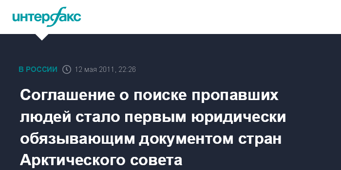 Соглашение о поиске пропавших людей стало первым юридически обязывающим документом стран Арктического совета
