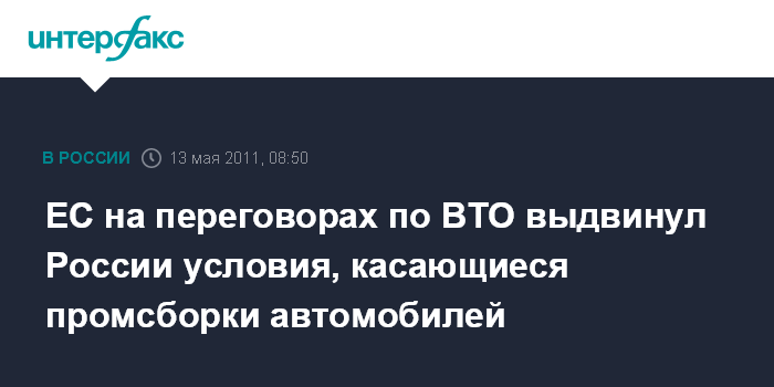 ЕС на переговорах по ВТО выдвинул России условия, касающиеся промсборки автомобилей