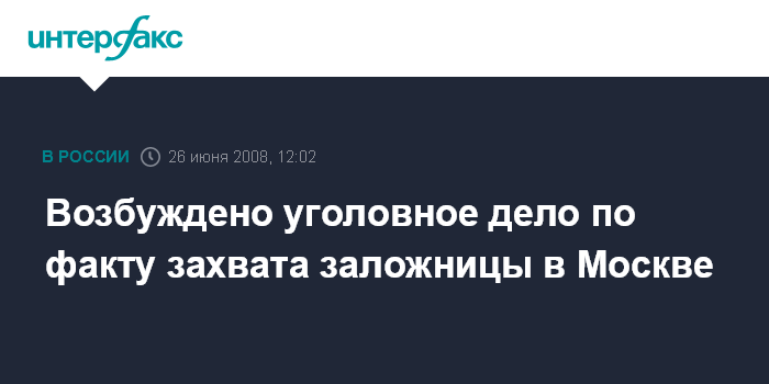 Москва. 26 июня. INTERFAX.RU - По факту захвата заложницы в центре Москвы Следственный комитет при прокуратуре (СКП) РФ возбудил уголовное дело.