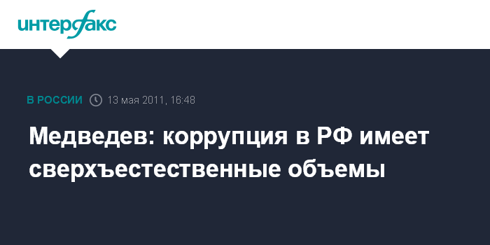 Медведев: коррупция в РФ имеет сверхъестественные объемы