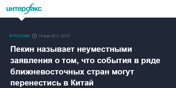 Пекин называет неуместными заявления о том, что события в ряде ближневосточных стран могут перенестись в Китай