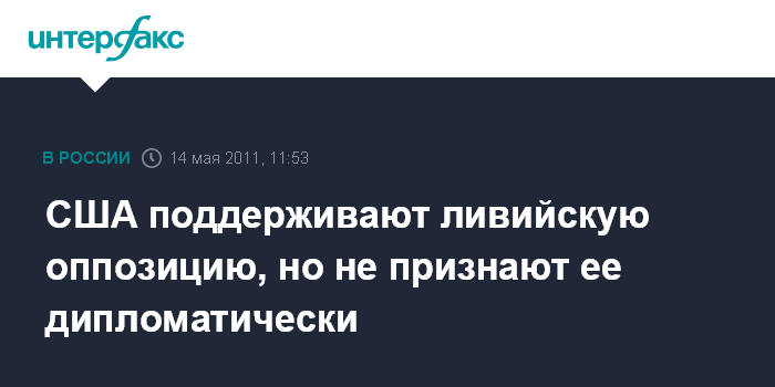 Вашингтон. 13 мая. INTERFAX.RU - Белый дом отказал в полной дипломатической поддержке Национальному совету Ливии, объединившему оппозицию. В Белом доме такое признание считают преждевременным, хотя и называют эту структуру законным и заслуживающим доверия собеседником, представляющим ливийский народ.