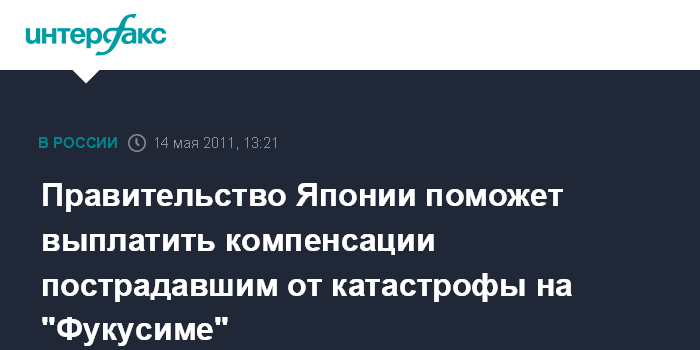Токио/Лондон. 13 мая. INTERFAX.RU - Японское правительство в субботу одобрило план помощи компании ТЕРСО, которая управляет аварийной АЭС "Фукусима" и теперь вынуждена выплачивать компенсации жертвам катастрофы, которая разразилась вслед за стихийными бедствиями в Японии в марте. Ожидается, что объемы выплат составят десятки миллиардов долларов.
